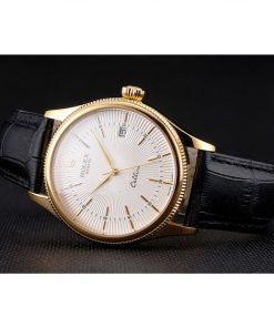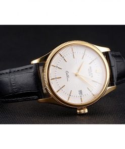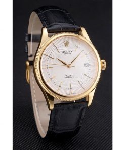 Elevate your style with the Superclone Rolex Cellini 38mm, a masterpiece of horological craftsmanship that blends timeless elegance with modern precision. This men’s watch features a sophisticated 38mm yellow gold-plated case paired with a luxurious black crocodile leather strap, creating a striking contrast that exudes refinement. The pristine white dial serves as the perfect canvas for the watch’s clean, minimalist design, making it an ideal accessory for both formal occasions and everyday wear.