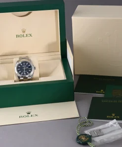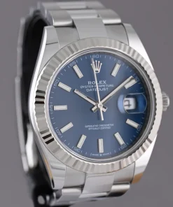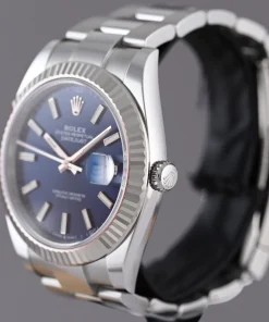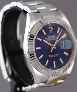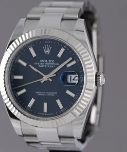 The Rolex Datejust 41mm Blue Dial 126334 Oyster is a masterpiece of horological craftsmanship, blending timeless elegance with modern precision. This men’s watch features a striking 41mm case crafted from premium 904L grade stainless steel, renowned for its exceptional durability and lustrous finish. The iconic blue dial exudes sophistication, perfectly complementing the sturdy Oyster bracelet made from the same high-quality steel.
