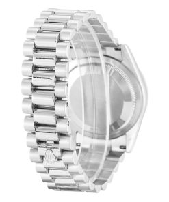 Crafted from premium 904L grade stainless steel, the watch boasts exceptional durability and a polished finish that exudes sophistication. The 36mm case houses a stunning silver dial, offering a clean and classic aesthetic that pairs effortlessly with any attire. The President bracelet, also made from 904L stainless steel, ensures a comfortable and secure fit while adding to the watch’s refined appeal.