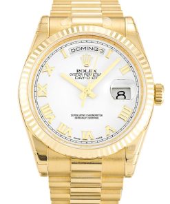 The Rolex Day-Date 36mm White Dial 118238 is a masterpiece of horological craftsmanship, blending timeless elegance with precision engineering. This men’s watch features a striking 36mm yellow gold-plated case paired with a luxurious President bracelet, creating a bold statement of sophistication. The pristine white dial offers exceptional legibility, perfectly complementing the watch’s regal aesthetic.