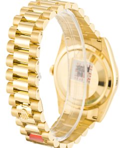Designed for discerning watch enthusiasts, this Day-Date model combines practicality with prestige. The 30-meter water resistance makes it suitable for daily wear, while the classic 36mm diameter offers a versatile fit. The President bracelet, renowned for its comfort and distinctive design, completes this exceptional timepiece that embodies both status and functionality.
