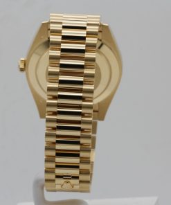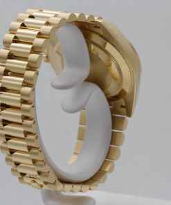 Powered by a reliable kinetic (automatic) movement with Swiss (ETA) quality, this timepiece ensures accurate timekeeping with every wear. The iconic President bracelet, crafted from 18k yellow gold with semi-circular three-piece links, offers unparalleled comfort and a seamless fit. The sapphire crystal provides exceptional scratch resistance, maintaining the watch’s pristine appearance for years to come.