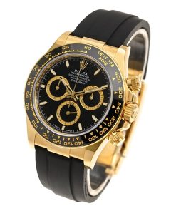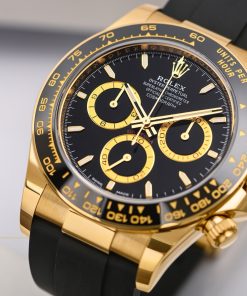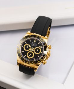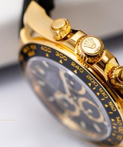Crafted from premium 904L steel, the Superclone Daytona boasts superior durability and refined finishing that rivals genuine Rolex watches. Every detail, from the sleek 40mm 18k yellow gold case to the black monobloc Cerachrom bezel with its tachymetric scale, reflects uncompromising attention to detail. The black dial exudes sophistication, while the scratch-resistant sapphire crystal ensures lasting clarity. With a weight margin of just 5 grams compared to the original, this replica achieves an astonishing level of authenticity.