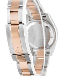 The Oyster bracelet, crafted from the same stainless steel and rose gold-plated materials as the case, provides exceptional comfort and security. With water resistance up to 30 meters, this Lady-Datejust maintains its elegance while offering practical protection against daily splashes and rain.