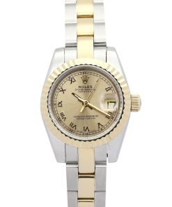 Every detail of this watch reflects Rolex’s commitment to quality, from the meticulously crafted two-tone finish to the iconic date window at 3 o’clock. The combination of stainless steel and yellow gold plating ensures longevity while retaining its radiant appearance. Whether you’re seeking a statement piece or a reliable everyday watch, the Lady-Datejust 179163 delivers unmatched craftsmanship and timeless appeal.