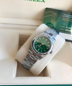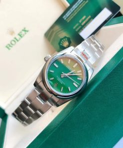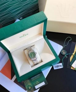 Attention to detail shines through in every element, from the polished bezel to the practical date indicator at 3 o’clock. With a waterproof rating of 30m straight from the factory, this timepiece is designed for everyday wear. Whether you’re drawn to its striking green dial or the seamless blend of luxury and performance, the Rolex Oyster Perpetual 31/41mm is a testament to exceptional craftsmanship.