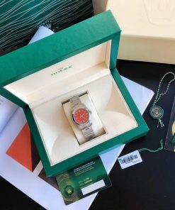 The Rolex Oyster Perpetual 31/41mm in stainless steel with a striking red dial is a masterpiece of precision and elegance. Designed for those who appreciate timeless sophistication, this watch combines Rolex’s iconic design with robust functionality. Its solid 316L stainless steel case and 904L stainless steel bracelet ensure durability, while the scratch-proof sapphire crystal protects the vibrant red dial from everyday wear.
