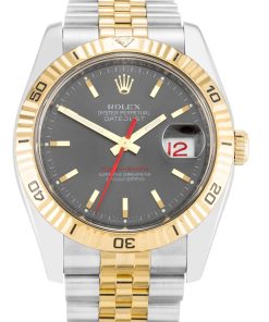 The Rolex Datejust Turn-O-Graph 116263 is a masterpiece of horological engineering, blending timeless elegance with robust functionality. This 36mm men’s watch features a striking grey dial encased in a durable stainless steel and yellow gold-plated construction, exuding sophistication for any occasion. The iconic Jubilee bracelet, crafted from the same premium materials, ensures both comfort and enduring style.