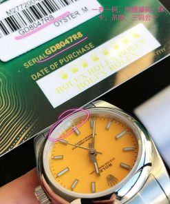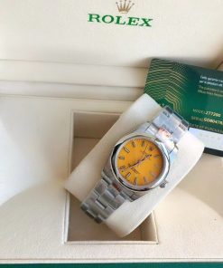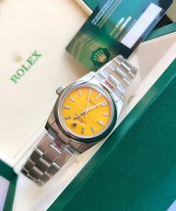 The Rolex Oyster Perpetual 31/41mm in stainless steel with a vibrant yellow dial is a masterpiece of precision and style. Designed for those who appreciate timeless elegance with a modern twist, this watch combines Rolex’s iconic design with exceptional craftsmanship. The striking yellow dial with stick markers offers bold legibility, while the polished stainless steel case and bracelet exude luxury and durability.