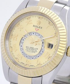 The Rolex Sky-Dweller 42mm Gold Dial 326938-2 is a masterpiece of horological engineering, designed for the modern gentleman who demands both sophistication and functionality. This men’s watch features a striking 42mm yellow gold-plated case paired with an elegant gold dial, exuding timeless luxury. The combination of stainless steel and yellow gold-plated Oyster bracelet ensures durability while maintaining a refined aesthetic.