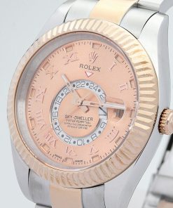 Powered by a precise kinetic (automatic) movement, this Sky-Dweller ensures reliable timekeeping without the need for manual winding. The watch’s Japanese Miyota craftsmanship guarantees exceptional quality, while the scratch-resistant sapphire crystal protects the dial from everyday wear. The oyster band, crafted from stainless steel and rose gold-plated materials, offers durability and comfort, making it ideal for daily wear.