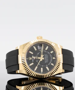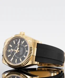 Crafted with meticulous attention to detail, the Sky-Dweller features a durable sapphire crystal that protects the dial from scratches and adds a touch of elegance. The black rubber band provides a comfortable fit, making it ideal for daily wear or special occasions. With water resistance up to 30 meters, this watch is as practical as it is stylish, suitable for various environments.