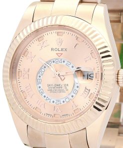 The Rolex Sky-Dweller 42mm Champagne Dial 326938-2 is a masterpiece of horological engineering, designed for the modern gentleman who appreciates both luxury and functionality. This men’s watch combines Rolex’s iconic design with advanced features, making it a standout timepiece for any occasion. The 42mm rose gold-plated case exudes sophistication, while the champagne dial adds a touch of understated elegance that complements any attire.