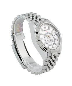 Designed for comfort and elegance, the Sky-Dweller comes with a Jubilee bracelet featuring five-piece links, offering a secure and refined fit. The sapphire crystal ensures durability and scratch resistance, while the watch maintains water resistance up to 30 meters, making it suitable for everyday wear.