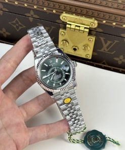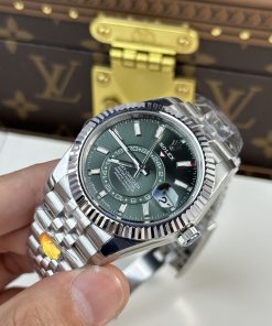 The Superclone Rolex Sky-Dweller 42 mm with a stunning mint green dial and Jubilee bracelet is a masterpiece of precision engineering and luxury design. This men’s watch combines the iconic aesthetics of Rolex with the advanced functionality of the Sky-Dweller collection, making it a standout timepiece for discerning watch enthusiasts.