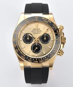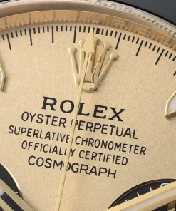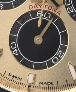 The Superclone Rolex Daytona 40 mm Golden Dial 126518LN “Pikachu” represents the pinnacle of replica watch craftsmanship, offering an exceptional blend of luxury aesthetics and precision engineering. This stunning timepiece faithfully recreates the iconic Daytona design with its striking golden dial and black Cerachrom bezel, delivering a bold statement piece for discerning watch enthusiasts.