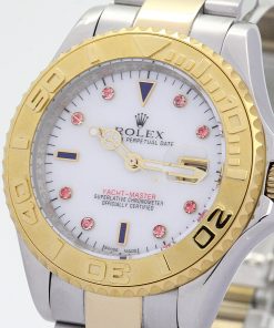 The Rolex Yacht-Master 40mm White Dial 16623 is a stunning timepiece that combines luxury and functionality in a classic design. Crafted with precision, this men’s watch features a sleek 40mm stainless steel and yellow gold-plated case, paired with a matching Oyster bracelet for a sophisticated look. The elegant white dial adds a touch of refinement, making it suitable for both casual and formal occasions.