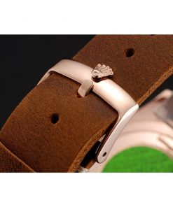The watch is complemented by a premium brown leather band, adding a touch of classic refinement to its sporty yet elegant design. With water resistance up to 30 meters, it??s suitable for everyday wear and light water activities, blending practicality with Rolex??s signature style.