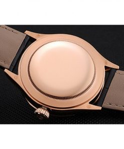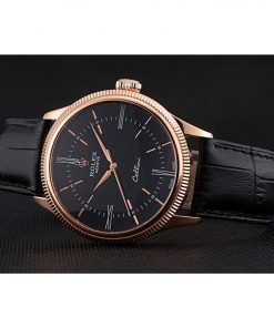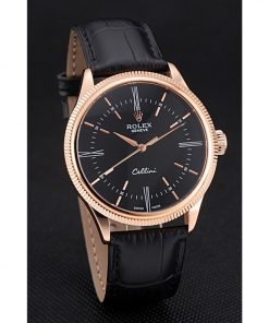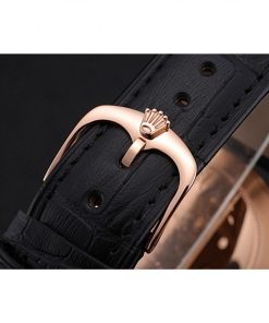 Featuring a sleek 39mm rose gold-plated case, this watch exudes luxury and refinement. The black crocodile leather strap adds a touch of classic sophistication, while the black dial provides a striking contrast for easy readability. Every element of this watch has been carefully crafted to mirror the quality and design of the original Rolex Cellini collection.