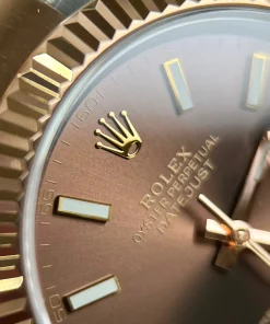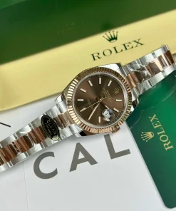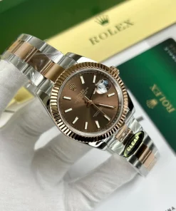 At the heart of this watch is a high-quality Kinetic (Automatic) movement, ensuring reliable and accurate timekeeping. The striking chocolate dial adds a touch of warmth and richness, complemented by a fluted bezel that enhances its classic Rolex aesthetic. The sapphire crystal glass provides exceptional scratch resistance, while the watch’s water resistance of up to 30 meters ensures practicality for everyday wear.
