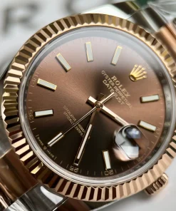 The Superclone Rolex Datejust 41 mm Chocolate Dial 126331 Oyster is a meticulously crafted timepiece that combines luxury and precision. Designed as a men’s watch, it features a stunning 41 mm case made from Everose Rolesor??a sophisticated blend of Oystersteel and Everose gold. This elegant combination ensures durability while exuding timeless sophistication, making it a perfect accessory for any occasion.