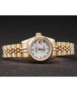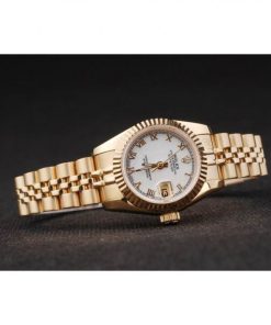 The Superclone Rolex Datejust 28mm White Dial SRL100 is an exquisite women’s watch that masterfully blends timeless elegance with precision engineering. This stunning timepiece replicates the iconic Rolex Datejust design with remarkable accuracy, featuring a 28mm yellow gold-plated case and matching bracelet that exudes luxury. The crisp white dial provides perfect contrast against the warm gold tones, creating a sophisticated look suitable for any occasion.