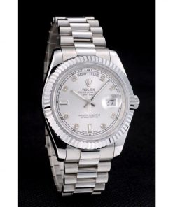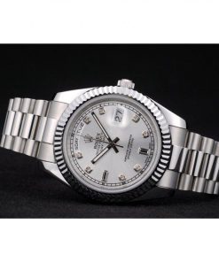 The Superclone Rolex Day-Date 40mm Silver Dial 41995 is a masterpiece of precision engineering, offering the iconic elegance of Rolex at an exceptional value. This men’s watch combines brushed stainless steel construction with a sophisticated silver dial, delivering a timeless aesthetic that complements any attire. The 40mm case diameter provides a balanced presence on the wrist, making it suitable for both formal occasions and everyday wear.