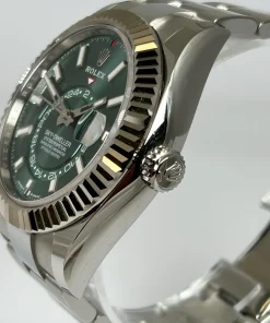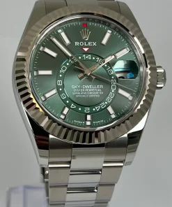 What sets this Superclone apart is its faithful reproduction of the genuine Rolex Sky-Dweller’s complex features and luxurious feel. The mint green dial variation offers a fresh, contemporary take on a classic design, making it a standout piece in any collection. Whether you’re a watch enthusiast or simply appreciate fine craftsmanship, this Sky-Dweller delivers exceptional value without compromising on quality.